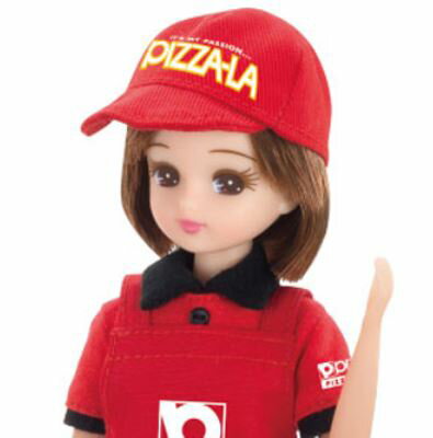 ピザーラの店員さんの衣装を着たリカちゃん。