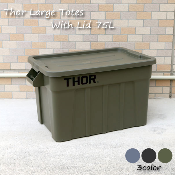【ポイント最大33倍!26日1:59まで】TRUST Thor Large Totes With Lid 75L 収納ケース ブラック グレー オリーブドラブ カーキ フタ付き おしゃれ プラスチック
