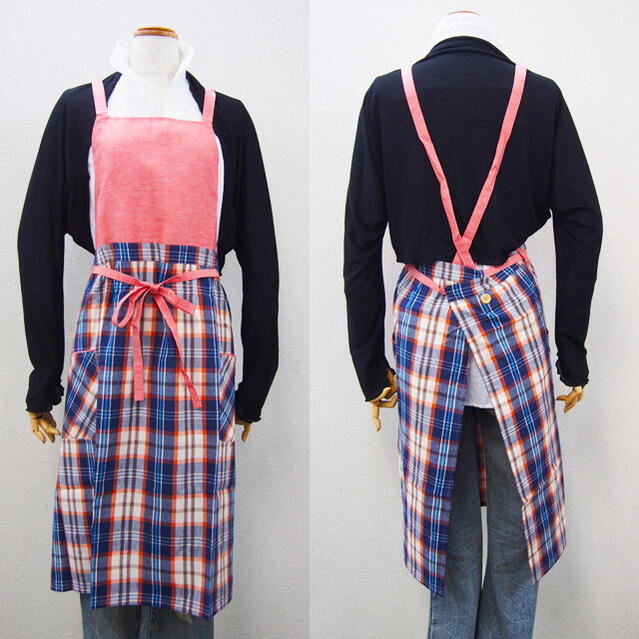 シャレでかわいい! マドラスチェック柄のエプロンです♪