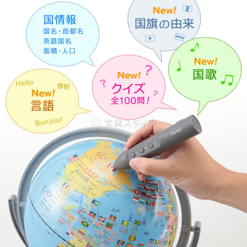 購入特典付き!在庫有り!しゃべる国旗付き地球儀(全回転・音声機能付)OYV400 国旗イラストつきのしゃべる地球儀!レイメイ藤井【RCP】【知育玩具】【クリスマス】【入学祝】【子供用】【学習用地球儀】【送料無料】